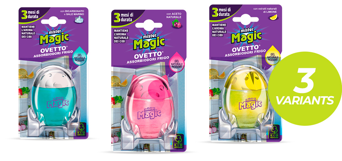 The Mister Magic® fridge odor absorber neutralises unpleasant odours instantly and safely thanks to its gel formula made from natural extracts.